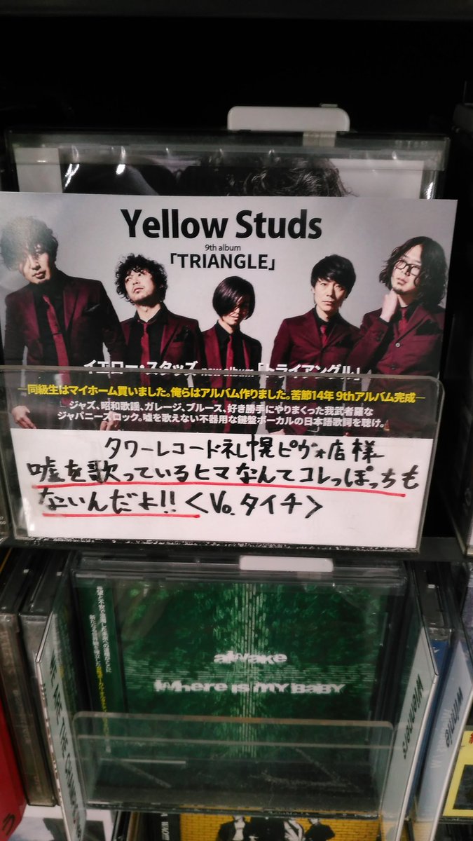 始まるまでタワレコでうろうろしてました。yellowstudsというバンドが最近自分的に熱いので、CDあるか棚をチェックしに行きましたら、新譜にイエスタ太一さんの直筆コメントが!